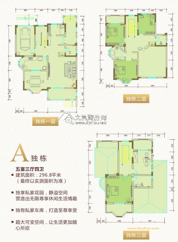 水岸西岭二期独栋5室3厅4卫2厨296.80㎡