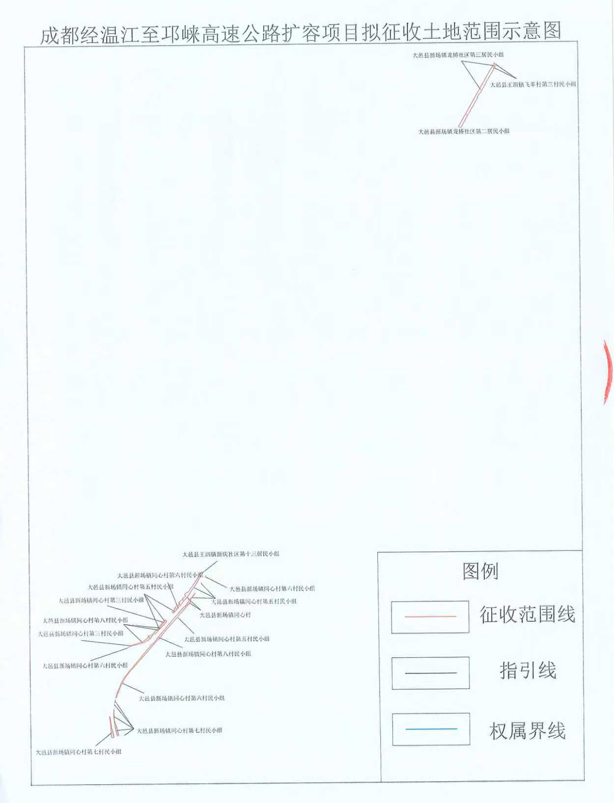 成温邛高速扩容大邑段新场镇拟征地范围 点击看大图